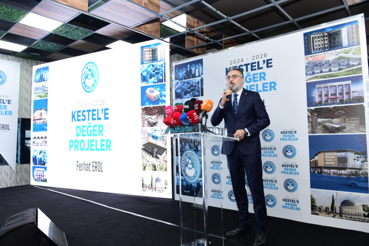 Kestel Belediye Başkanı Ferhat Erol, İlçenin bugününü ve yarınını şekillendiren, her mahallesine dokunan yatırımlar, sosyal projeler ve altyapı hamlelerini tanıtmak üzere basın toplantısı düzenledi. Başkan Erol, düzenlediği basın toplantısında Kestel’de hayata geçirilen yatırımlar, devam eden çalışmalar ve planlanan projeleri geniş bir çerçevede ele alırken, ilçenin gelişim vizyonu ve hizmet öncelikleri detaylarıyla da paylaştı.