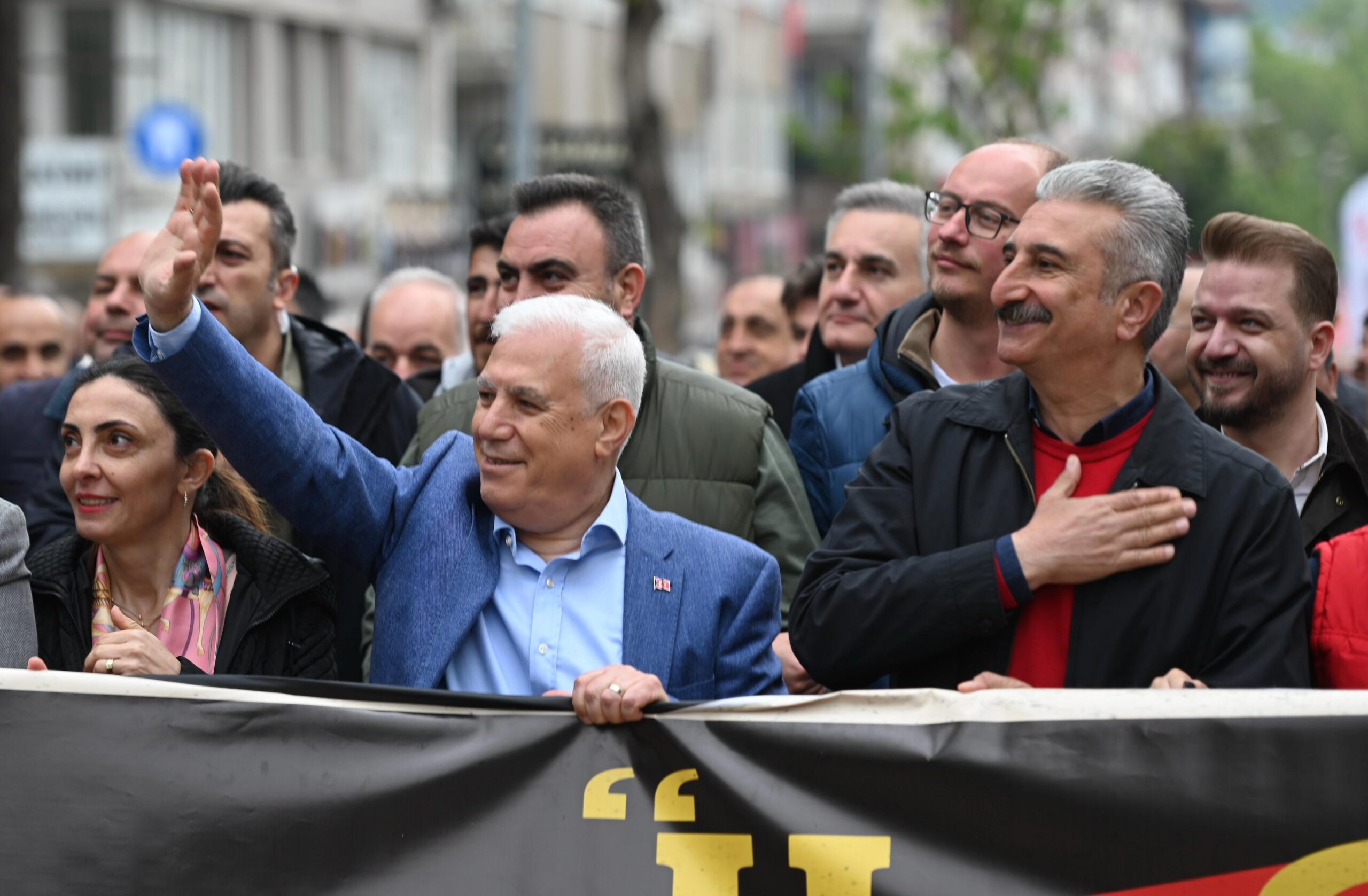 Bursa’da 1 Mayıs İşçi Bayramı, sendikaların, sivil toplum kuruluşlarının ve siyasi partilerin katılımıyla düzenlenen yürüyüşle kutlandı. İşçilerle omuz omuza yürüyen Başkan Mustafa Bozbey, “Emekçilerin yapmış olduğu işinin karşılığını alması, geleceğe güvenle bakması en büyük arzumuz ve isteğimizdir” dedi.