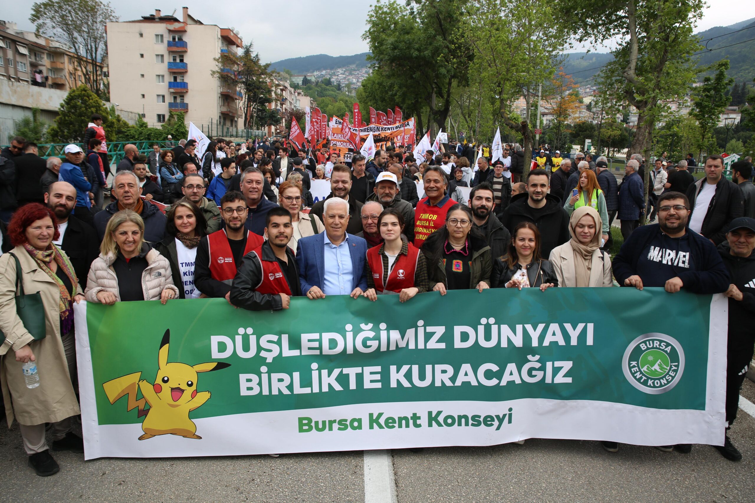 1 Mayıs Emek ve Dayanışma Günü, binlerce kişinin katılımıyla Eski Atatürk Stadyumu Meydanı’ndan Kent Meydanı’na doğru yapılan yürüyüşle kutlandı. Yürüyüşe Bursa Büyükşehir Belediye Başkanı Mustafa Bozbey’in yanı sıra CHP İl Başkanı Nihat Yeşiltaş, CHP Bursa Milletvekilleri Nurhayat Altaca Kayışoğlu, Kayıhan Pala, Orhan Sarıbal ve Hasan Öztürk, CHP ilçe başkanları, ilçe belediye başkanları, çok sayıda sendika, meslek odası, sivil toplum örgütü, dernek ve siyasi partilerin temsilcileri katıldı.