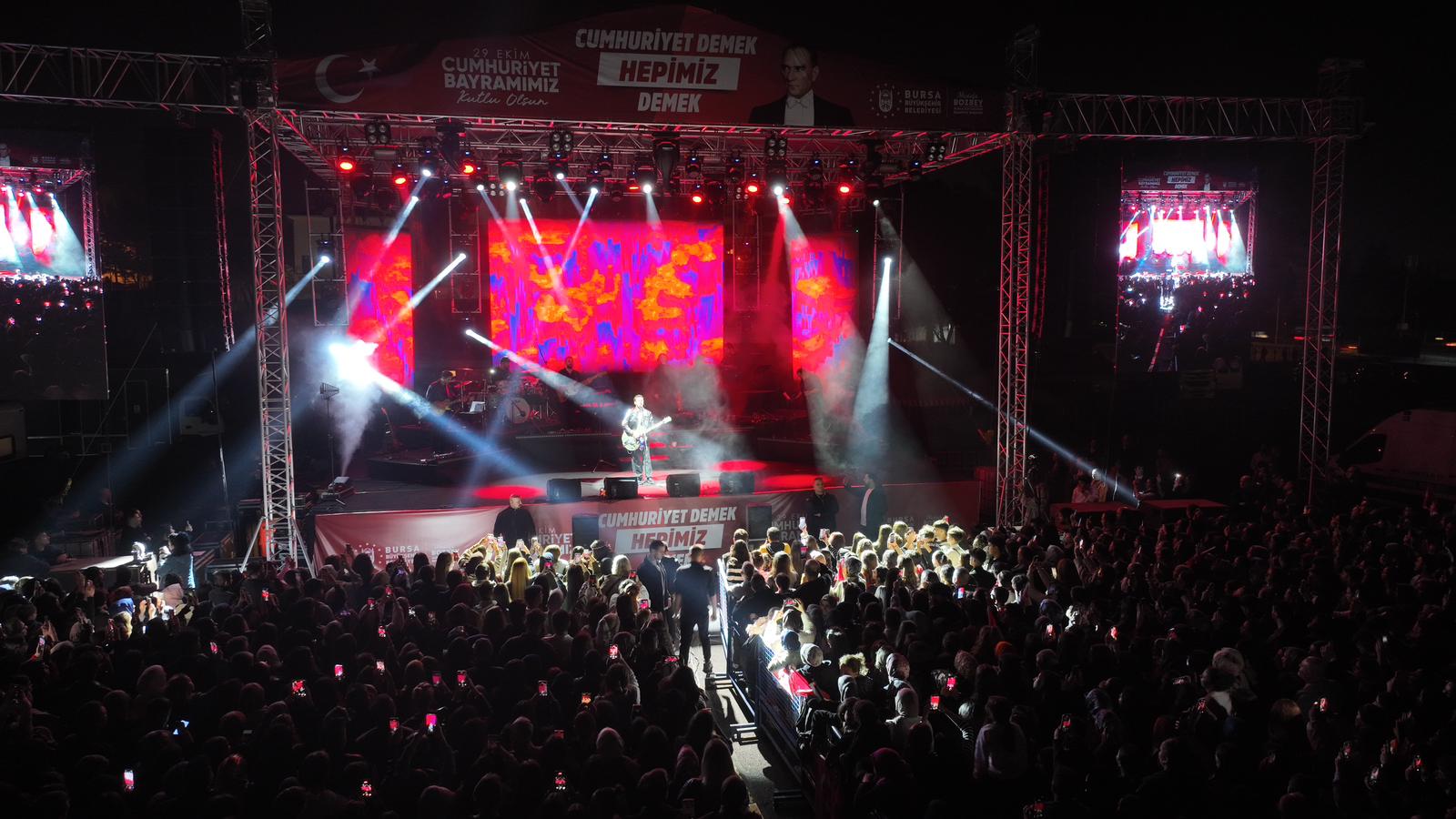 Bursa Büyükşehir Belediyesi, 29 Ekim Cumhuriyet Bayramı’nı kentin dört bir yanına düzenlediği etkinliklerle festival havasında yaşatıyor. Yıldırım’da düzenlenen Buray konserinde bir araya gelen binlerce Bursalı, Cumhuriyet coşkusunu doyasıya yaşadı.