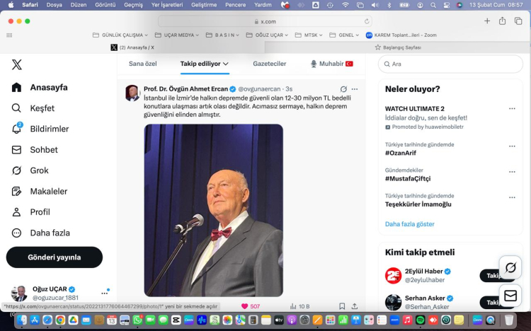Gazeteci Oğuz Uçar’ın, EkonomistTÜRK YouTube kanalında sunduğu “Ekonomi Gündemi” programına konuk olan Prof. Dr. Ercan şeklindeki gündemi değiştirecek değerlendirmelerde bulundu. Geçtiğimiz günlerde sosyal medya X hesabı üzerinden “İstanbul ile İzmir’de halkın depremde güvenli olan 12- 30 milyon TL bedelli konutlara ulaşması artık olası değildir. Acımasız sermaye, halkın deprem güvenliğini elinden almıştır” diye paylaşım yapan Prof. Dr. Ercan, kaderci bir anlayış ile depremlerde can kayıplarının önlenemeyeceğini bildirdi.